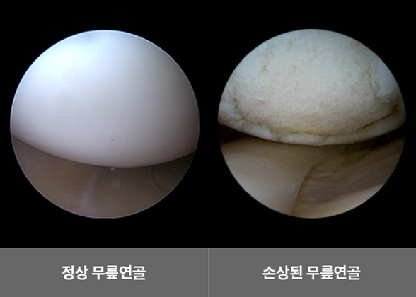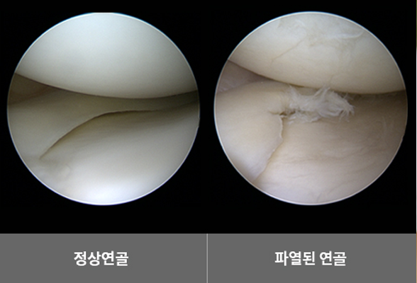 초기의 손상은 MRI 검사로도 발견하기 어려우며, 관절내시경 상에서 정확한 연골 손상 정도를 확인할 수 있습니다.